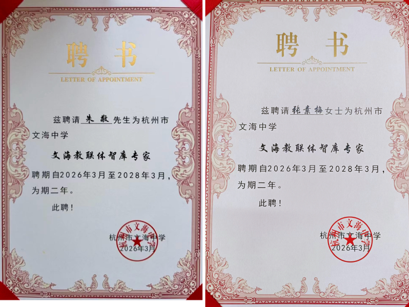 3月25日,我校公共教育学院朱敬、张素梅两位老师被文海中学聘为“文海教联体智库专家”,学校在大中小学劳动教育一体化建设上实现再深化。